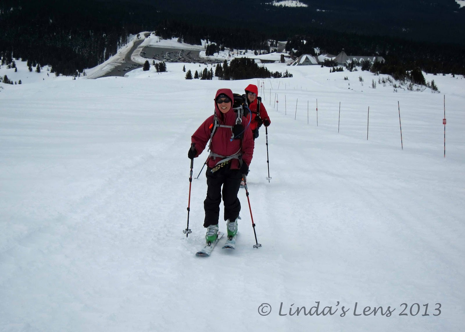 We spent nearly two hours climbing to our turnaround point. It took all of fifteen minutes to ski back down. Although a little shaky starting out, I got in a groove, and made some excellent tele turns - with no falls. It felt good to swoosh down the slopes with confidence!