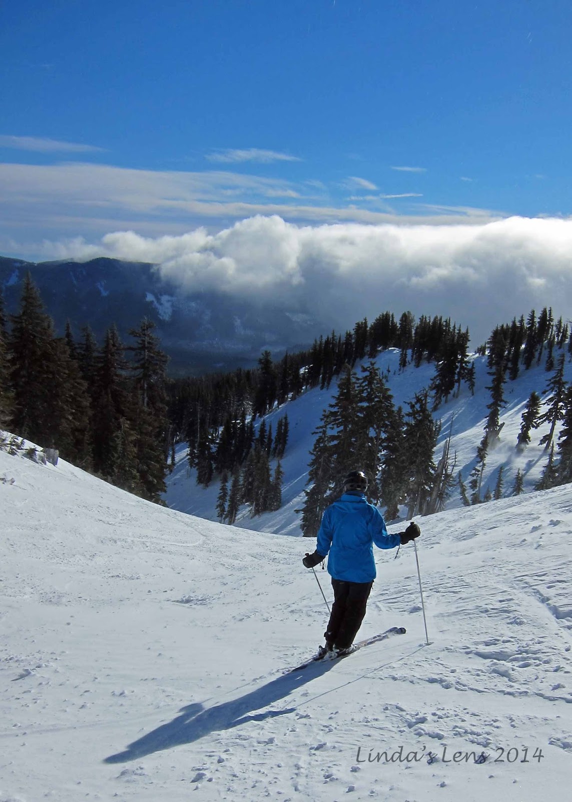 After enjoying our break, and thawing out cold hands and toes, it was time to put those layers back on, slip another hand warmer in the glove, and return to the slopes. The morning snow was so good, I was looking forward to more powder turns.