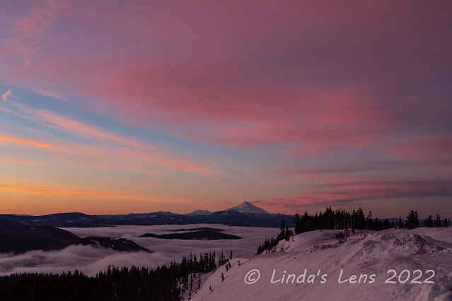 Where I live January is a great month to catch sunrises. Not only are there interesting and often colorful clouds at dawn, the sun doesn't peek above the horizon until well after 7 am. You would think the day's later start would help with my rising early problem. However, in early January I really wanted to capture sunrise over Mt Hood. Reaching Mt. Hood required an hour and a half drive, which still meant a very early wake up call. I planned several sunrise photo sessions in January, only to talk myself out of it at when it came time to actually get out of bed.