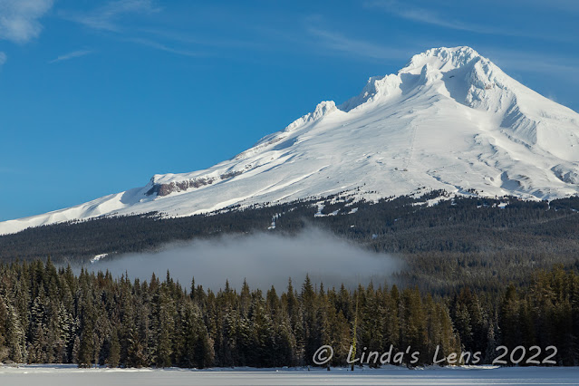 During summer months, one can drive to the shore of Trillium Lake. In winter, the Forest Service closes the road, and people ski, snowshoe, or hike the two miles to visit the lake. It's easy access from the highway and short distance makes this a popular destination when the snow flies. But today I was surprised to find only one other vehicle in the parking lot when I arrived.