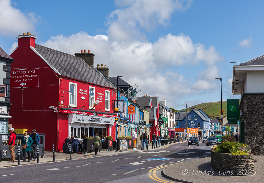 After crossing the mountains, George expertly guided our bus into the adorable town of Dingle.  A seaside village that catered to tourists, I instantly fell in love with all the brightly colored buildings that lined the main street.